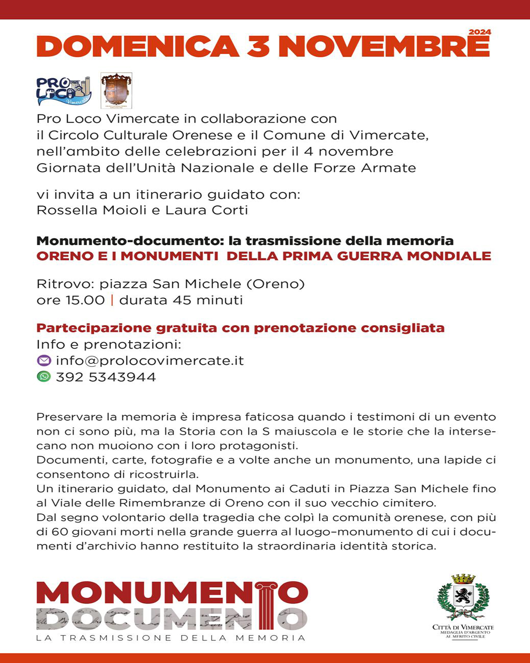 Oreno 3 novembre, ore 15.00 - Piazza San Michele