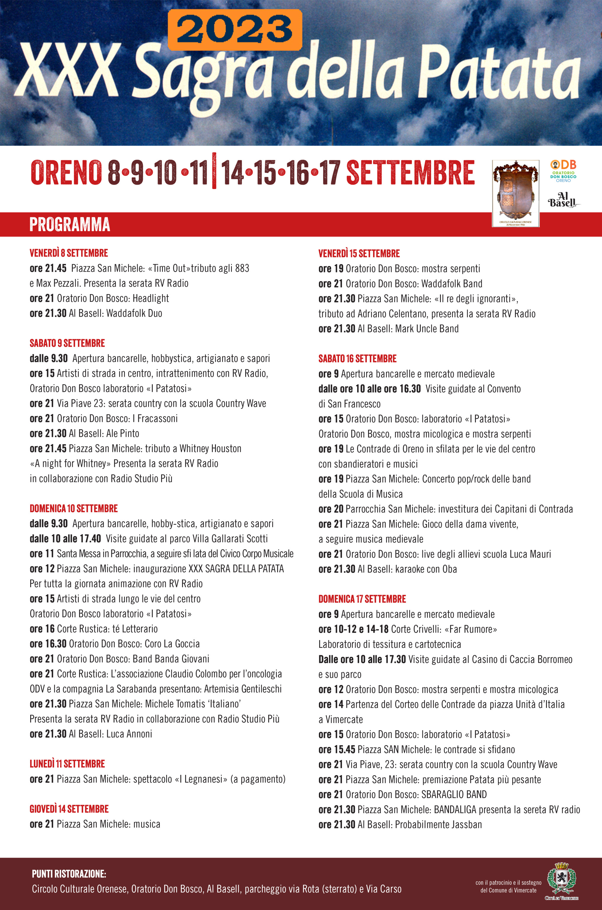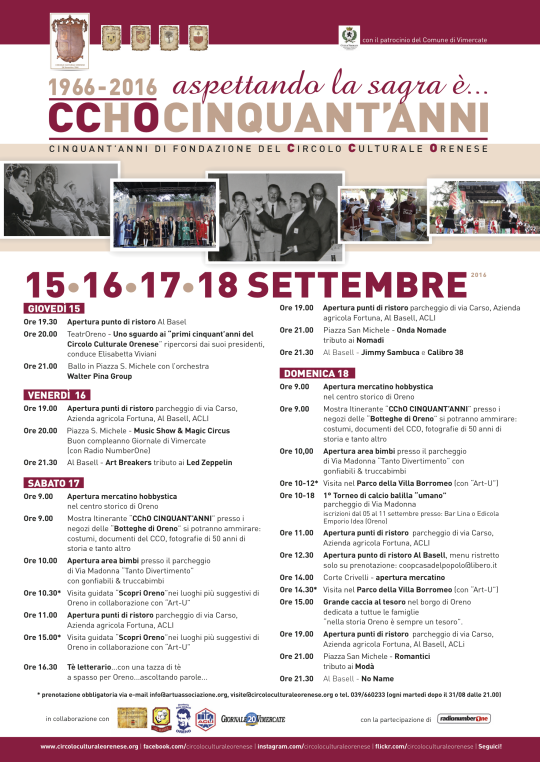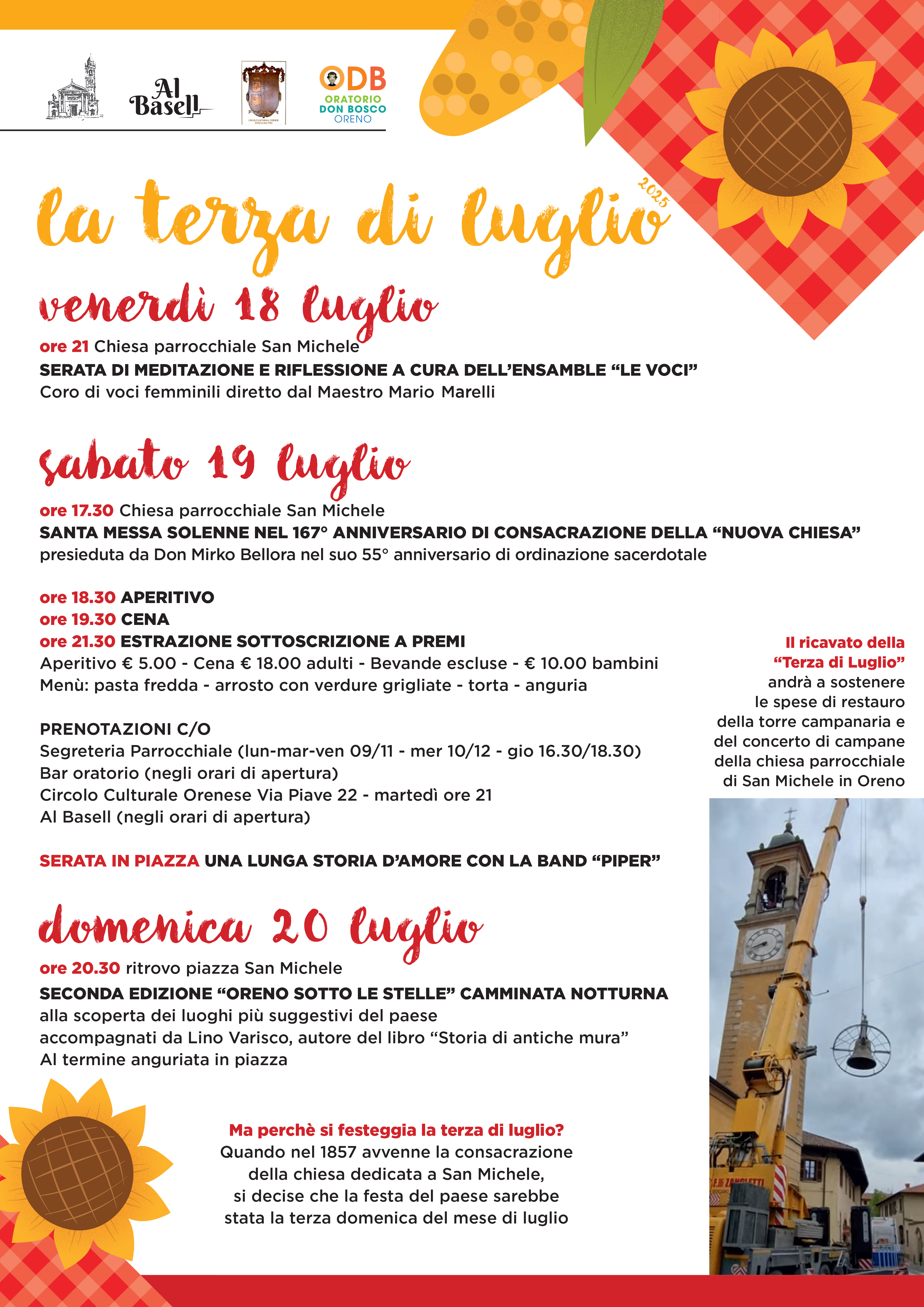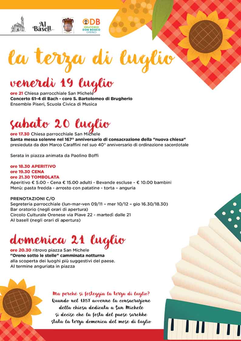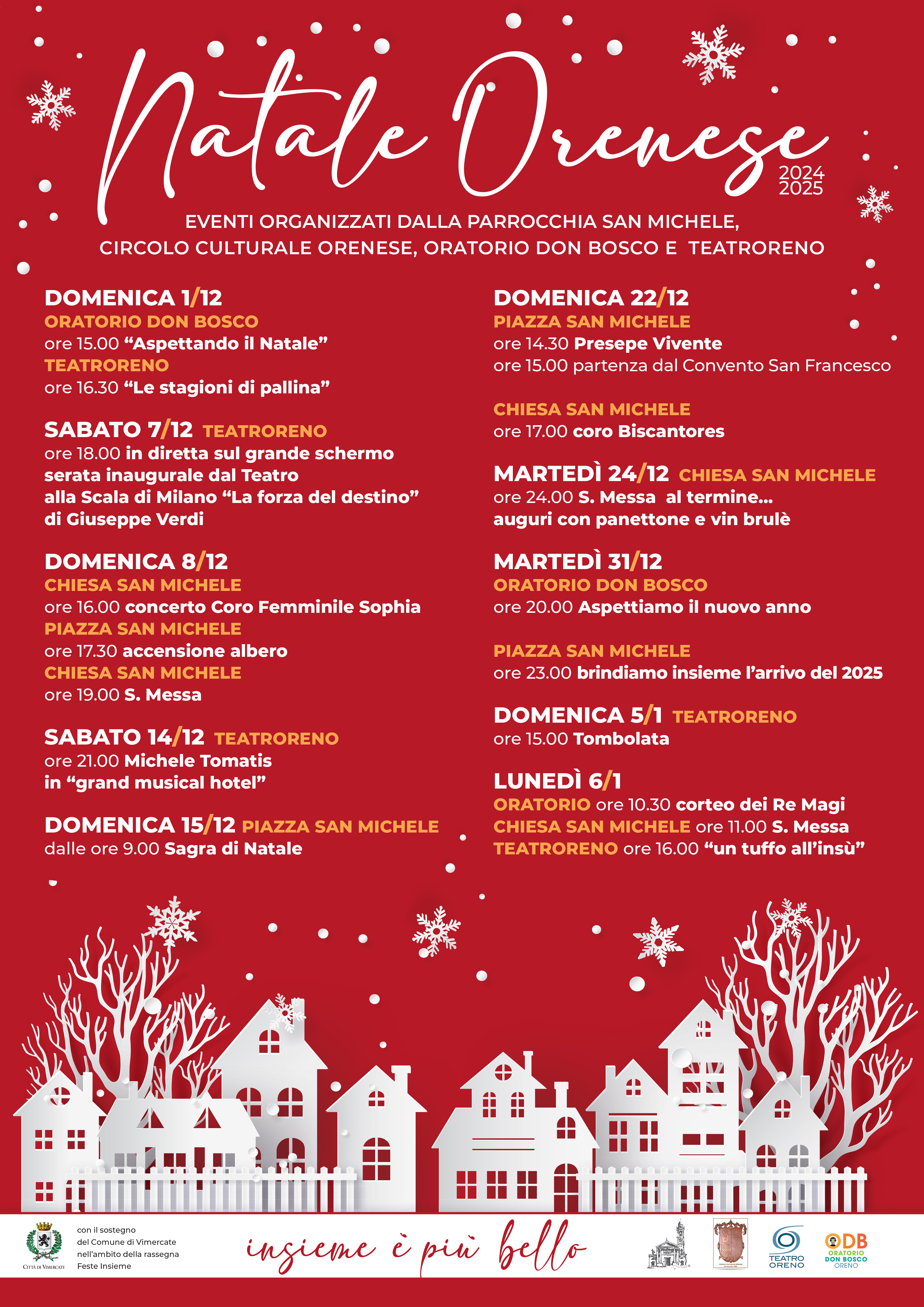 Eventi organizzati dalla Parrocchia San Michele, Circolo Culturale Orenese, Oratorio ...